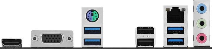 Зовнішні порти:1 x PS/2 keyboard/mouse combo 1 x HDMI 1 x D-Sub 4 x USB 3.2 Gen 1 Type-A 2 x USB 2.0 Type-A 1 x RJ-45 3 x Audio jacks