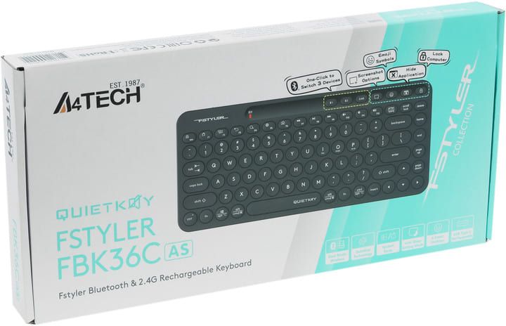 A4Tech FBK36C AS (Black) - стильна бездротова клавіатура для роботи й навчання. Стабільне підключення через Bluetooth або USB, компактний дизайн і зручні мультимедійні клавіші. Ідеальне рішення для сучасного робочого простору!