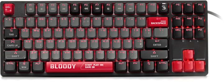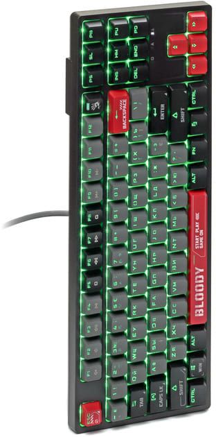 Додаткові функції:Вкрай тиха робота клавіш Збереження 7 ігрових режимів 100% натискання всіх клавіш (N-Key Rollover) Програмне забезпечення Bloody KeyDominator