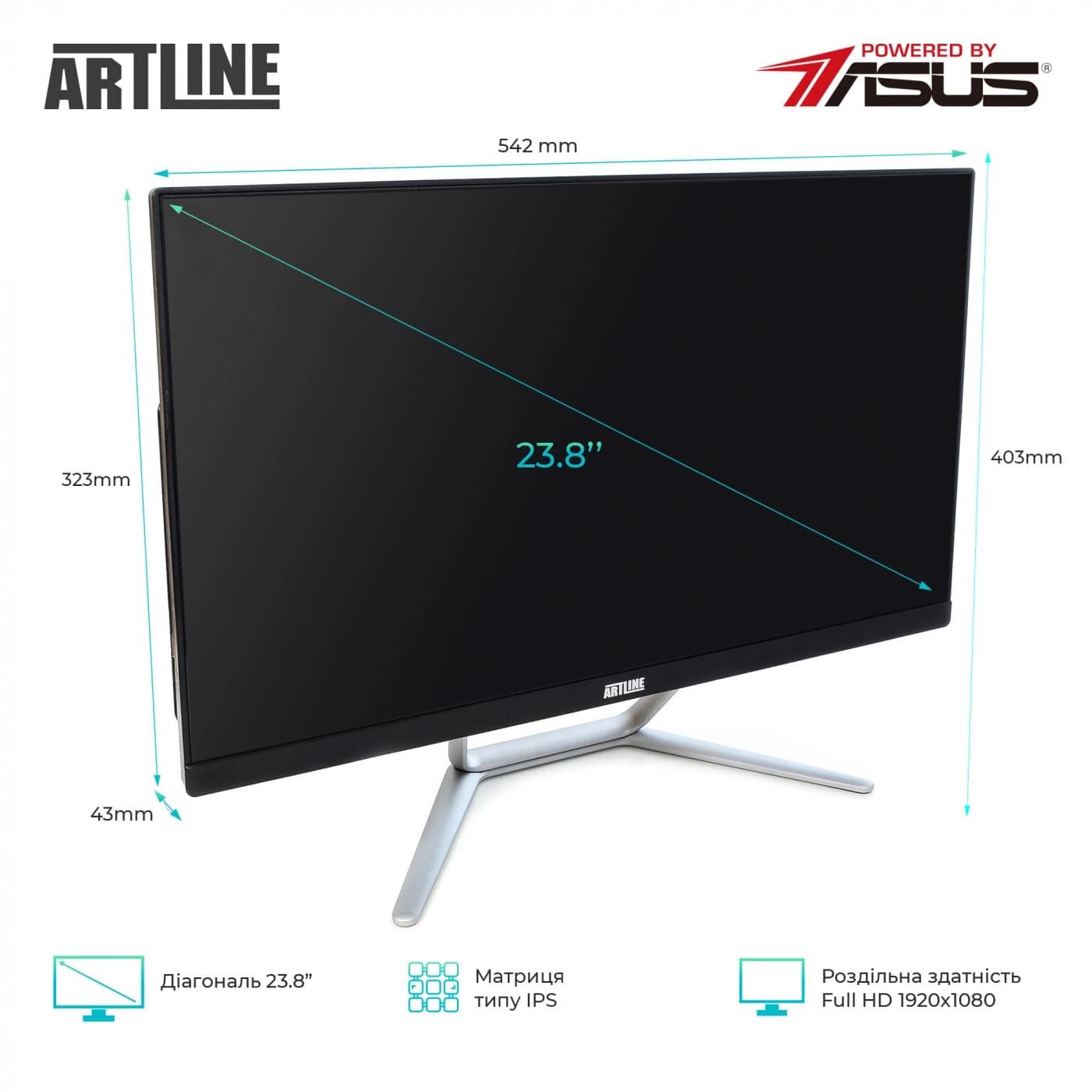 Якісний екран: 23.8-дюймовий Full HD дисплей ідеально підходить для комфортної роботи та перегляду мультимедійного контенту.
