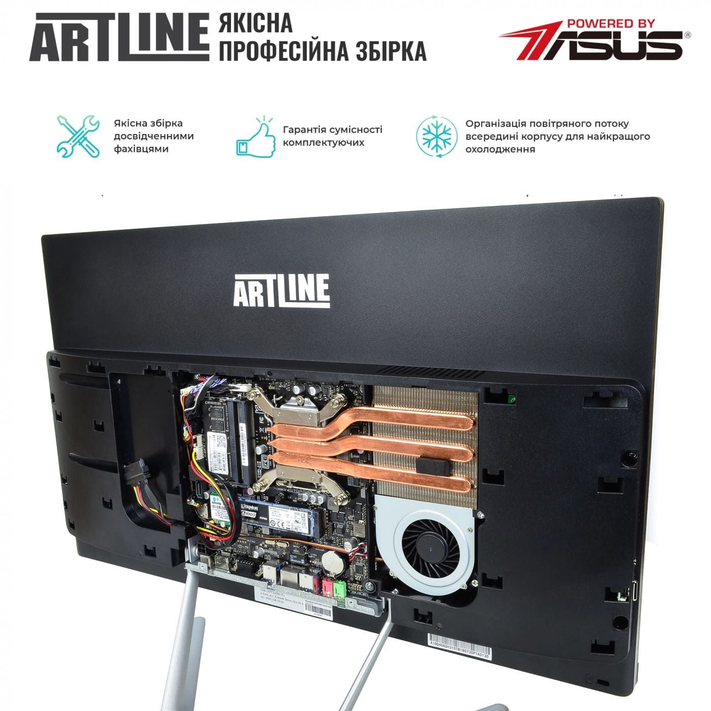 Компактність: Займає мінімум місця на столі, оскільки всі компоненти вбудовані в монітор. Це створює акуратне та естетичне робоче місце.